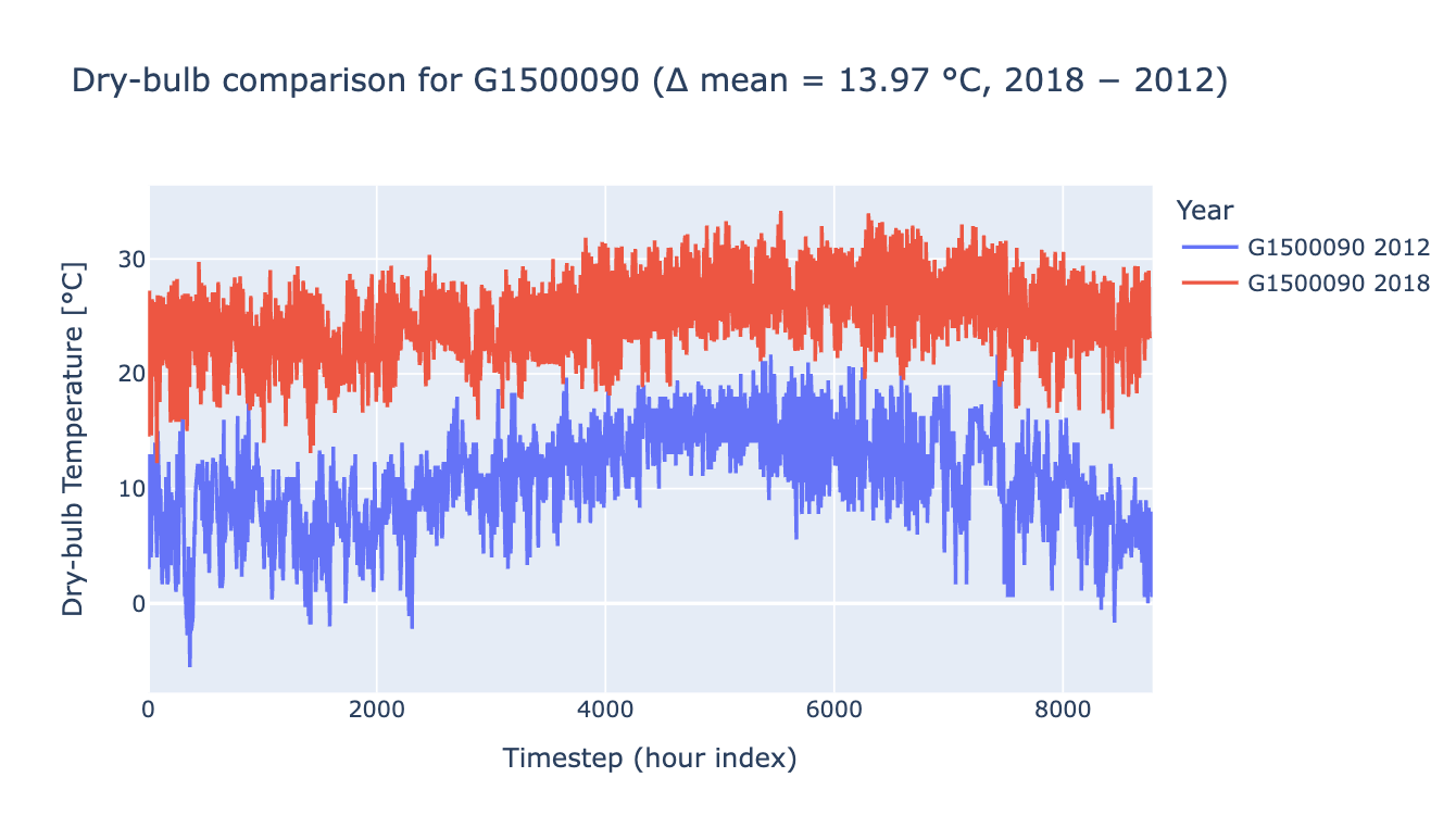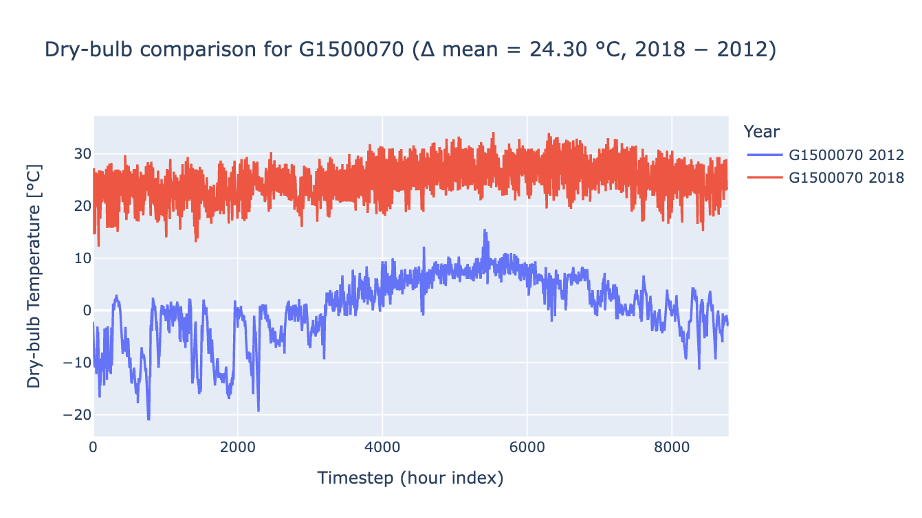 The weather files used for Hawaii models in ComStock 2025 Release 2 - 2012 Weather, appear incorrect. As shown below, the temperatures in these weather files drop below 0°C (32°F), which is unrealistic for Hawaii’s climate. These weather files resulted in approximately 25% higher heating energy in the state compared to 2018 Weather ComStock releases.