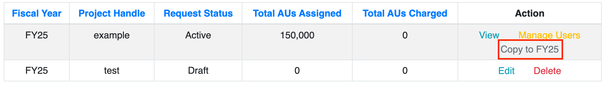 If you have an existing allocation that you need to continue for the next fiscal year and you are one of the leads on it, there is an option to copy the information over to a new request form as a starting point.
