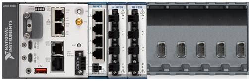 This reference design has been built and tested on the cRIO-9049 embedded controller, however this code will likely run on most recent cRIO variants with Intel processors and the Linux real time kernel with little to no modification. The core MODAQ:RD configuration, before consideration of device-specific measurement objectives, includes code for a GPS/Inertial Navigation System (GNSS) module for position, heading, and attitude. This device can connect to the built-in RS-232 port on the cRIO, however since it's common to have separate GPS and IMU devices, and thus requiring more than one RS-232 port, we include the NI-9870 4-port RS-232 module in this design. If only one RS-232 port is needed (such as the case with a GNSS or if there is no need for either the GPS or IMU), then the NI-9870 can be omitted and the single built-in RS-232 port can be used instead. See this in the Technical Reference section for more information on configuring the serial ports. Tech Note: One of MODAQ:Field's basic design requirements includes precision timestamping of measurement samples and events. To achieve this, earlier builds of MODAQ:Field designed on older cRIO hardware used an Ni-9467 GPS time synchronization Module and the Timekeeper API implemented in FPGA. This was great at the time and continues to be a viable and effective solution for accurate timestamping. However, as mentioned in the previous Tech Note, newer cRIOs support standards-based TSN or PTP (Precision Time Protocol)- which has distinct advantages over the former method with the NI-9467 module. Please see the Technical Reference for more details. The FPGA version of MODAQ:RD uses the NI-9467 method, while the DAQmx version uses PTP. Not to over-complicate this matter, but PTP can absolutely be used instead of the NI-9467 with the FPGA version, but only if the cRIO supports PTP (cRIO-904x and cRIO-905x series).