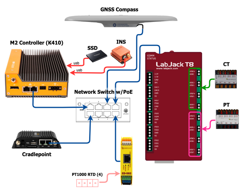 This section will discuss the hardware supported by M2 and present a reference design (RD) example that is supported by the M2 source code provided in the GitHub repository. It should be noted that any hardware mentioned has been either used in or evaluated for M2 projects, however this should not be interpreted as an endorsement or approval of any mentioned hardware product by NREL. Due to the general and flexible nature of the M2 software, M2 applications are not necessarily limited to these hardware selections.